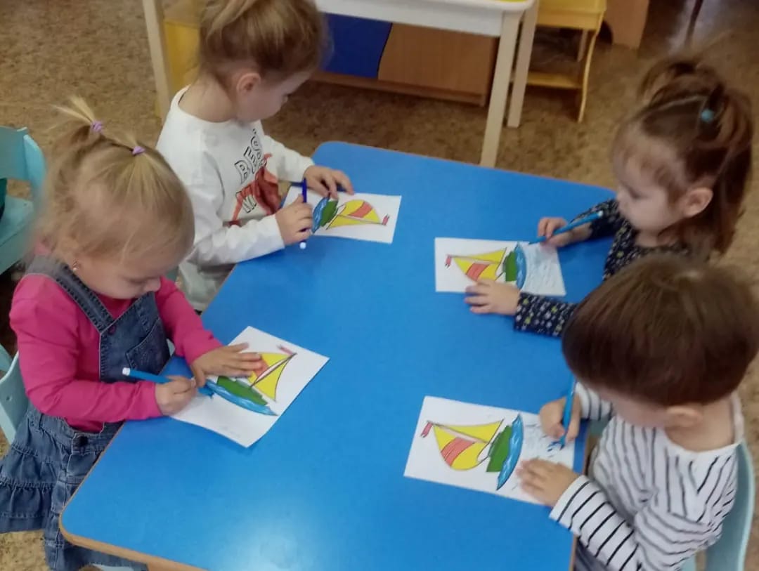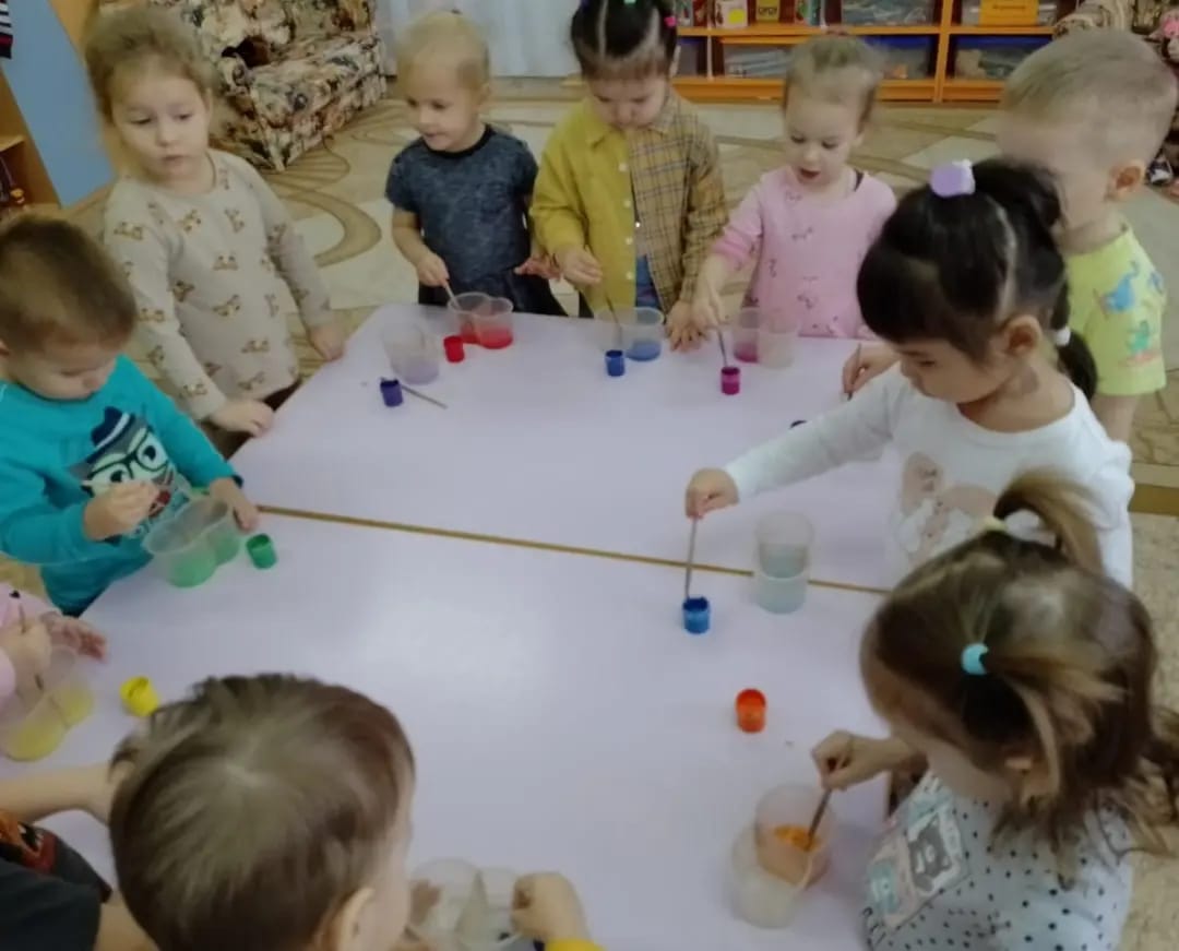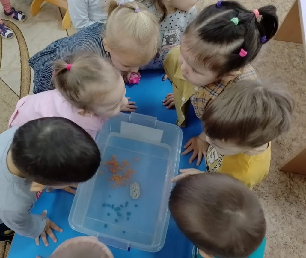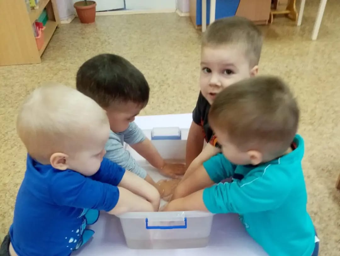 Тәрбиеші Евмушкова И.В. балаларға сумен ойнауды,балаларды қызықтыру, танымдық қызығушылық тудыру үшін оның қасиеттерін білуді ұсынды. Ойында балалар судың мөлдір, суық немесе жылы болатынын, қиыршық тастар суға ауыр болғандықтан бататынын білді, ал қайық жүзеді, ол жеңіл, бояулардың көмегімен суды әртүрлі түстермен бояуға болады. Ұйымдастырылған іс-әрекеттің соңында балалар толқындармен жүзетін қайық жасады. Мұндай ойындар мұғалімге балалардың танымдық қызығушылығын, қиялын, сөйлеуін,жаңа, қызықты, ерекше нәрсені байқап, қорытынды жасай білуге көмектеседі.