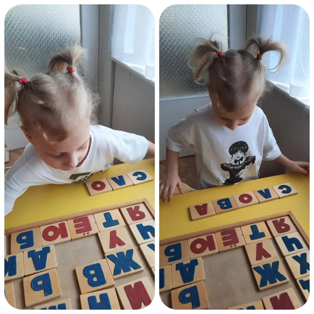 Балалар әріптерді таңдай отырып, ойын ойнайды, балалар сөздерді құрастырып, оларды оқып қана қоймай, дыбыстардың айтылуын бекітеді.