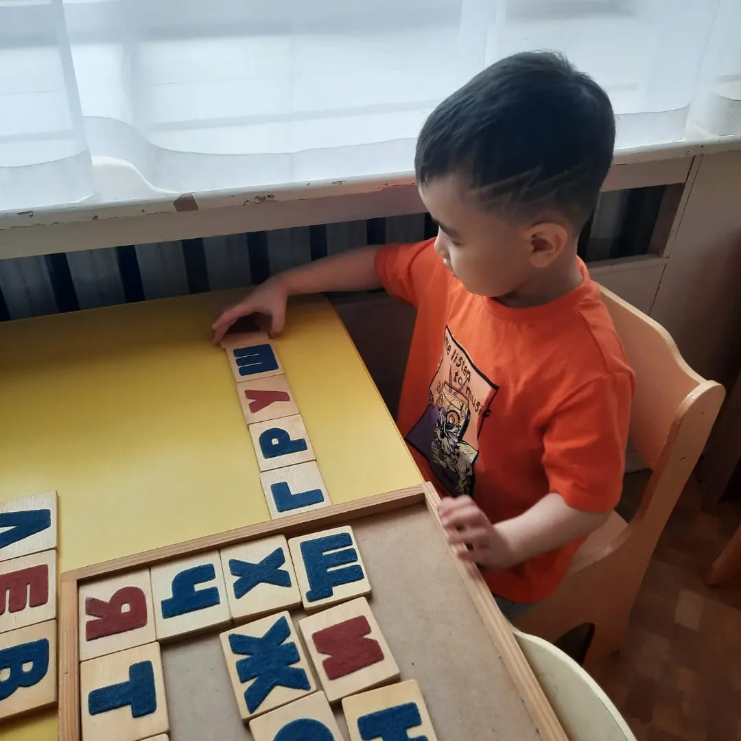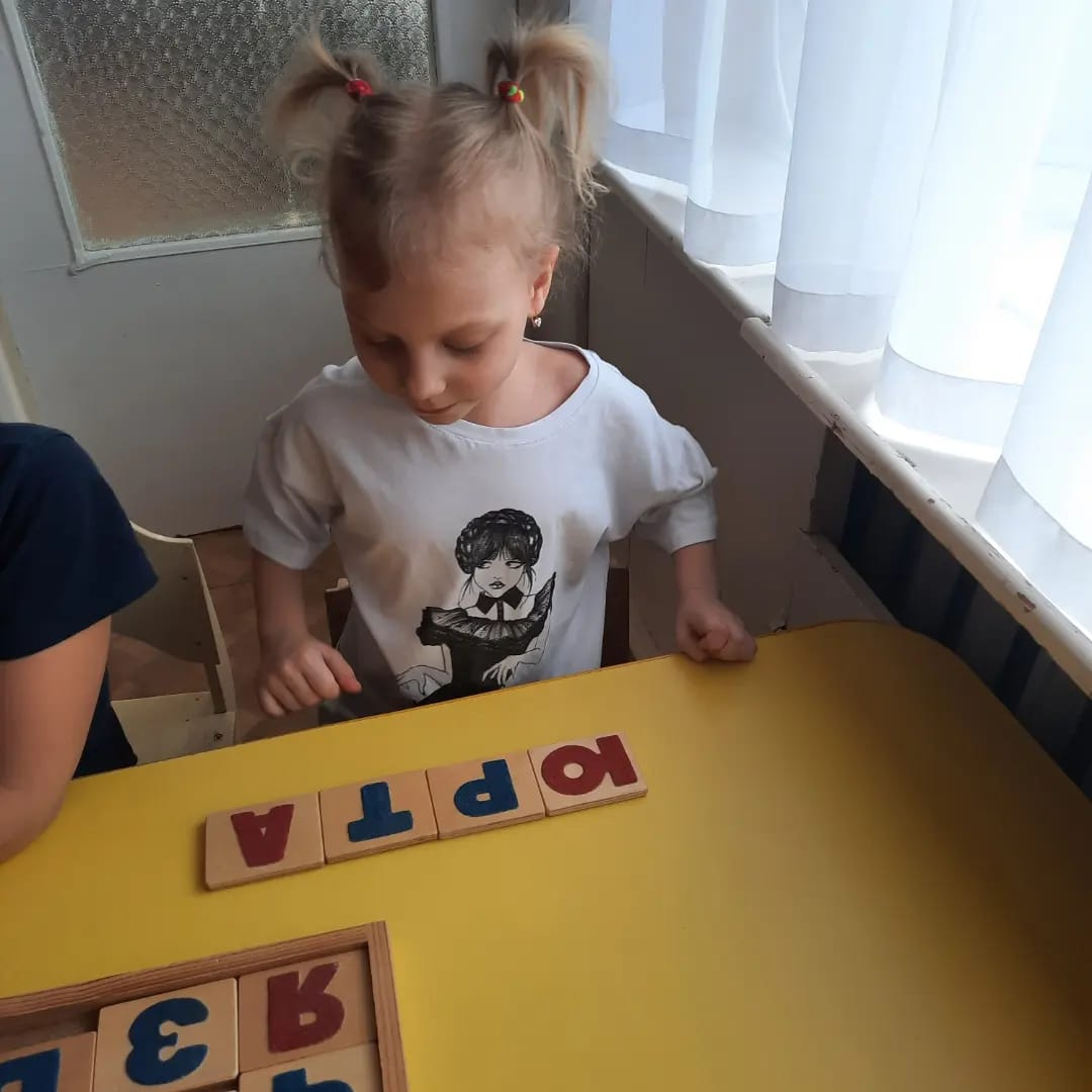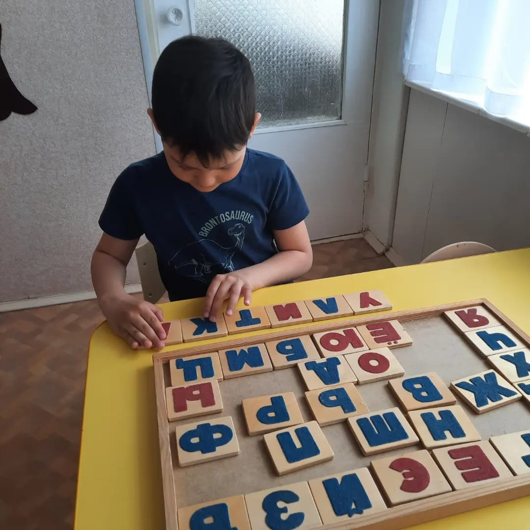«Непоседы» тобының тәрбиешілері өз жұмыстарында балаларды әріптермен таныстыру үшін жылжымалы әліпбиді пайдаланады.