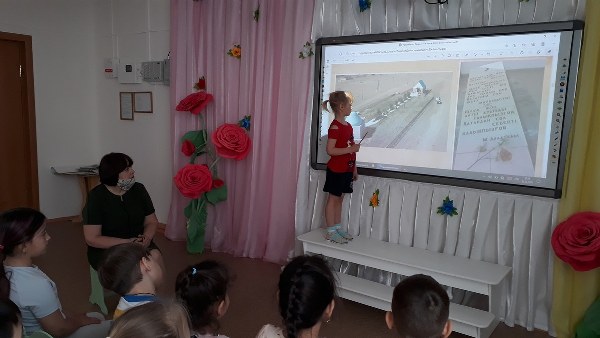Педагогтар балабақшаның ересек және мектепалды топтарының тәрбиеленушілерімен бірге Рухани жаңғыру бағдарламасы аясында Қостанай облысының киелі жерлеріне виртуалды саяхат жасады. Іс - шараның мақсаты: балаларды Қостанай облысының киелі жерлерімен таныстыру; отансүйгіштікке, «кіші» Отанға деген сүйіспеншілікке тәрбиелеу. Саяхат барысында тәрбиеленушілер Екідің мәдени ескерткішімен танысып, ағартушы туралы білімдерін бекітті. Ы.Алтынсарин кесенесінің қайда орналасқанын біліп, Міржақып Дулатов кесенесінде болды.