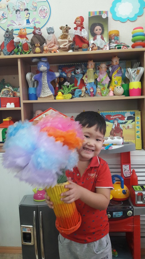 Балалар өз қолөнерін балабақшаға мақтанышпен алып келді және бәріне қолөнердің қалай және неден жасалғанын айтып берді.