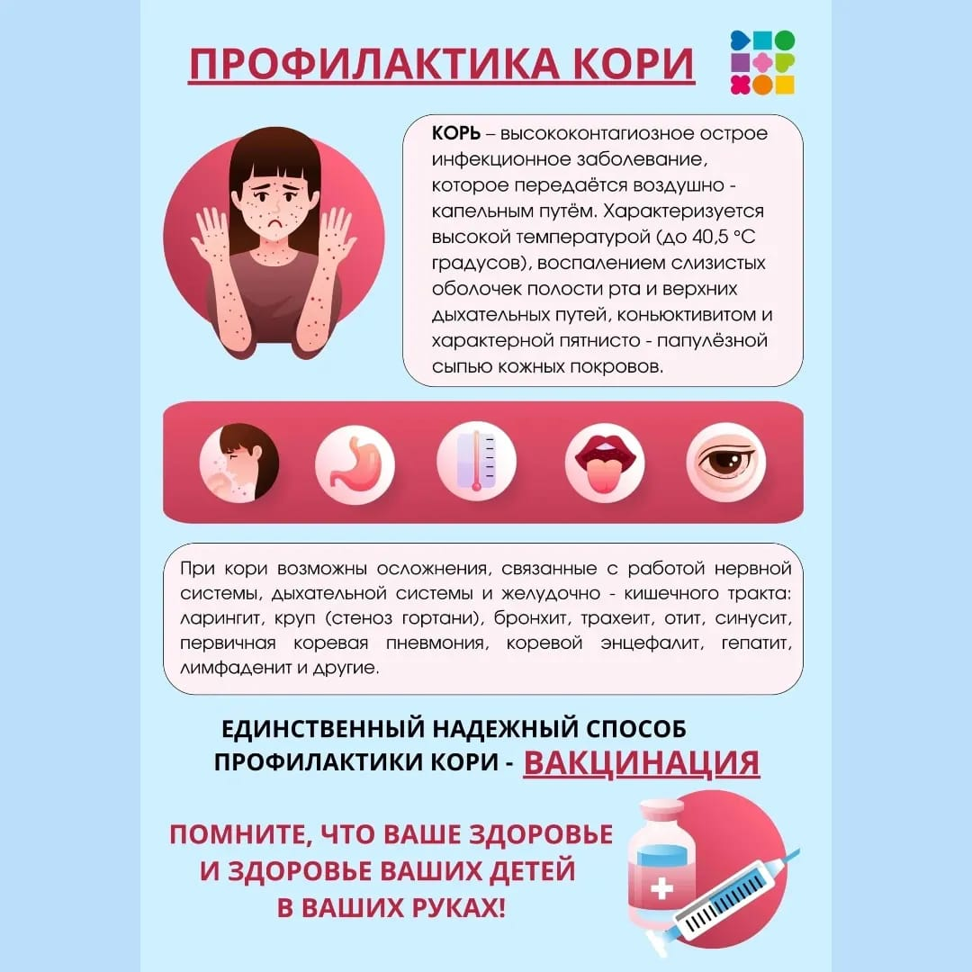 Напоминаем, что единственным эффективным средством, предупреждающим от заражения корью, а также от их осложнений является только вакцинация.