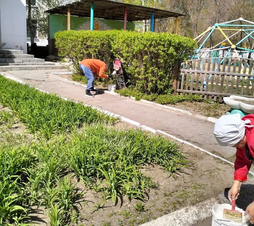 Субботник по благоустройству территории прошёл в КГКП "Ясли-сад 9". Сотрудники ДО привели дорожки в порядок, убрали мусор, побелили бордюры, деревья. Территория детского сада радует глаз не только дошкольников, но и родителей, сотрудников.