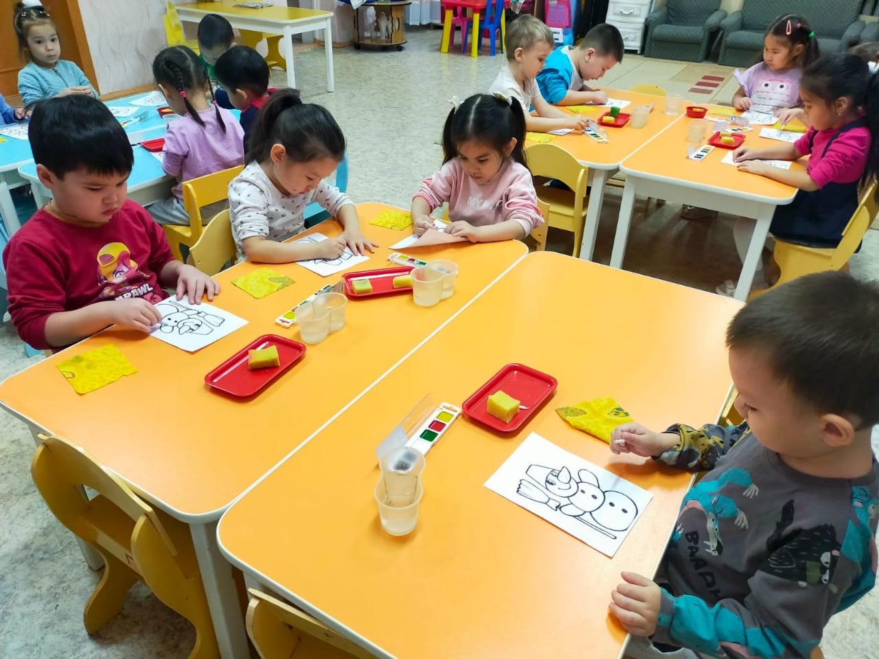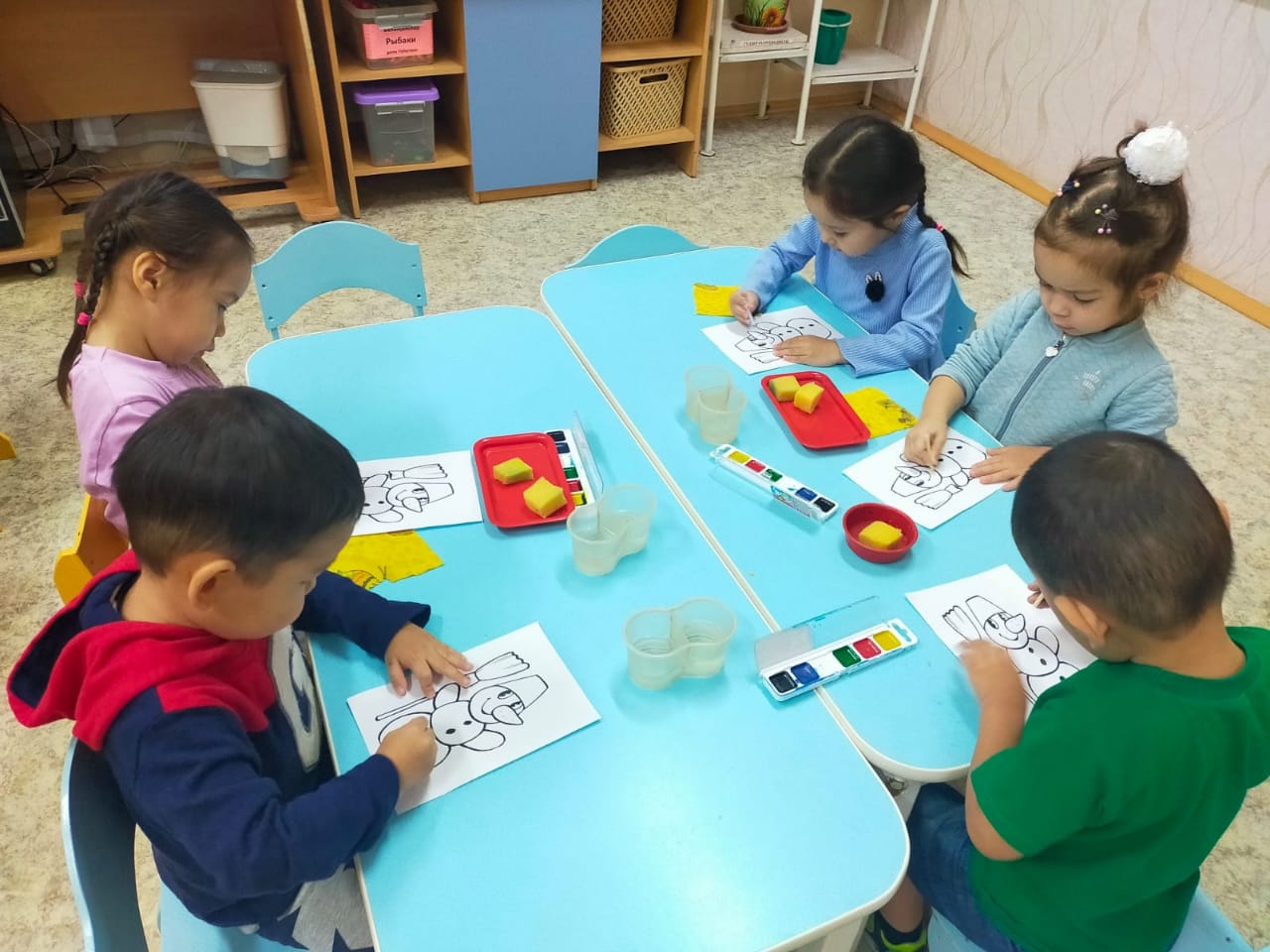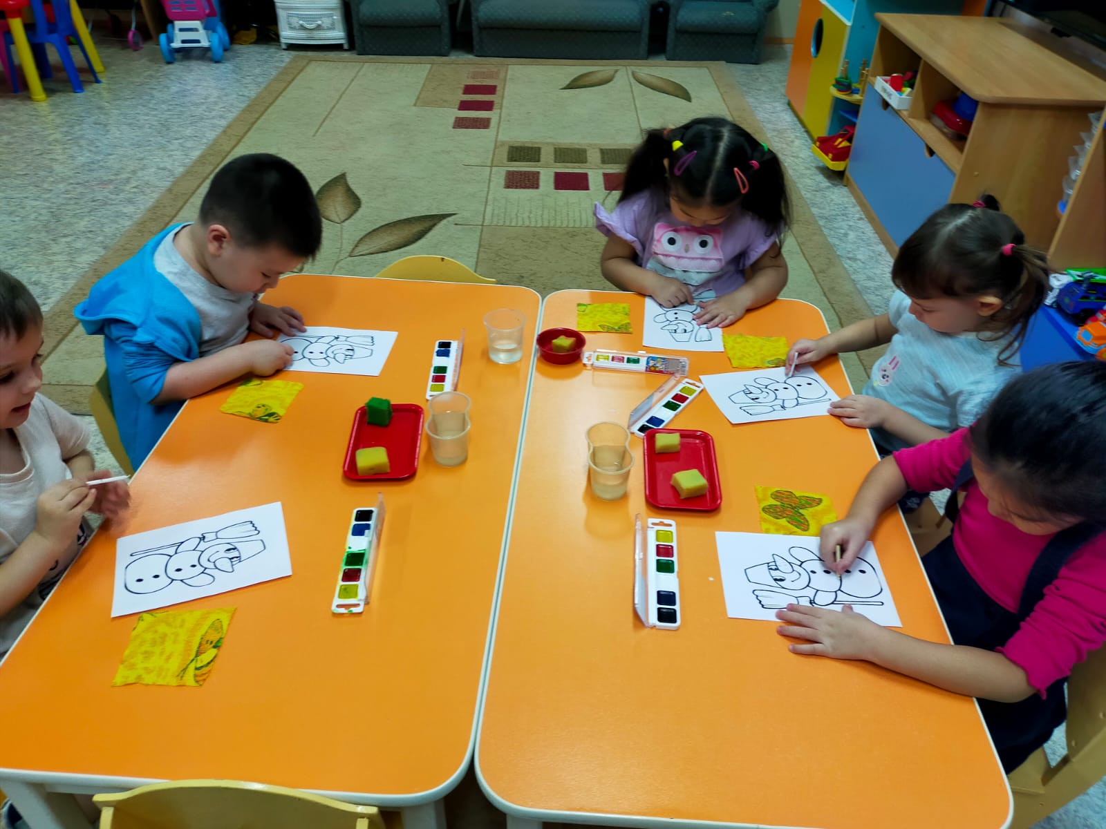Ортаңғы топ Радуга балалары дәстүрден тыс паролон губкамен суретті бастырып салуды үйренді.Саусақ бұлшық еттерінің қимыл қозғалысын дамыту.Тазалыққа, ұқыптылыққа тәрбиелеу. Балалар губкамен сурет салу іс-әрекет жасау әдіс-тәсілін көрсету.