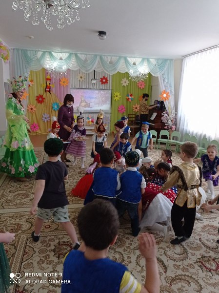Во время проведения развлечений во всех возрастных группах царила атмосфера добра, веселья и радости. Во время празднования были использованы сюрпризные моменты: в гости приходила красавица Көктем, Әже. Дети с интересом принимали участие, знакомились с новыми казахскими традициями и обычаями, играли в игры. На развлечении предусматривало закрепление знаний детей о национальном колорите казахской культуры по средствам разнообразных подвижных игр: Ойындар: «Тұлпар», «Шеңбер», «Тақия», «Қыз қуу», «Көңілді домбыра», «Керуез», и др., стихов и веселых песен на казахском и русском языках, зажигательных танцев.
