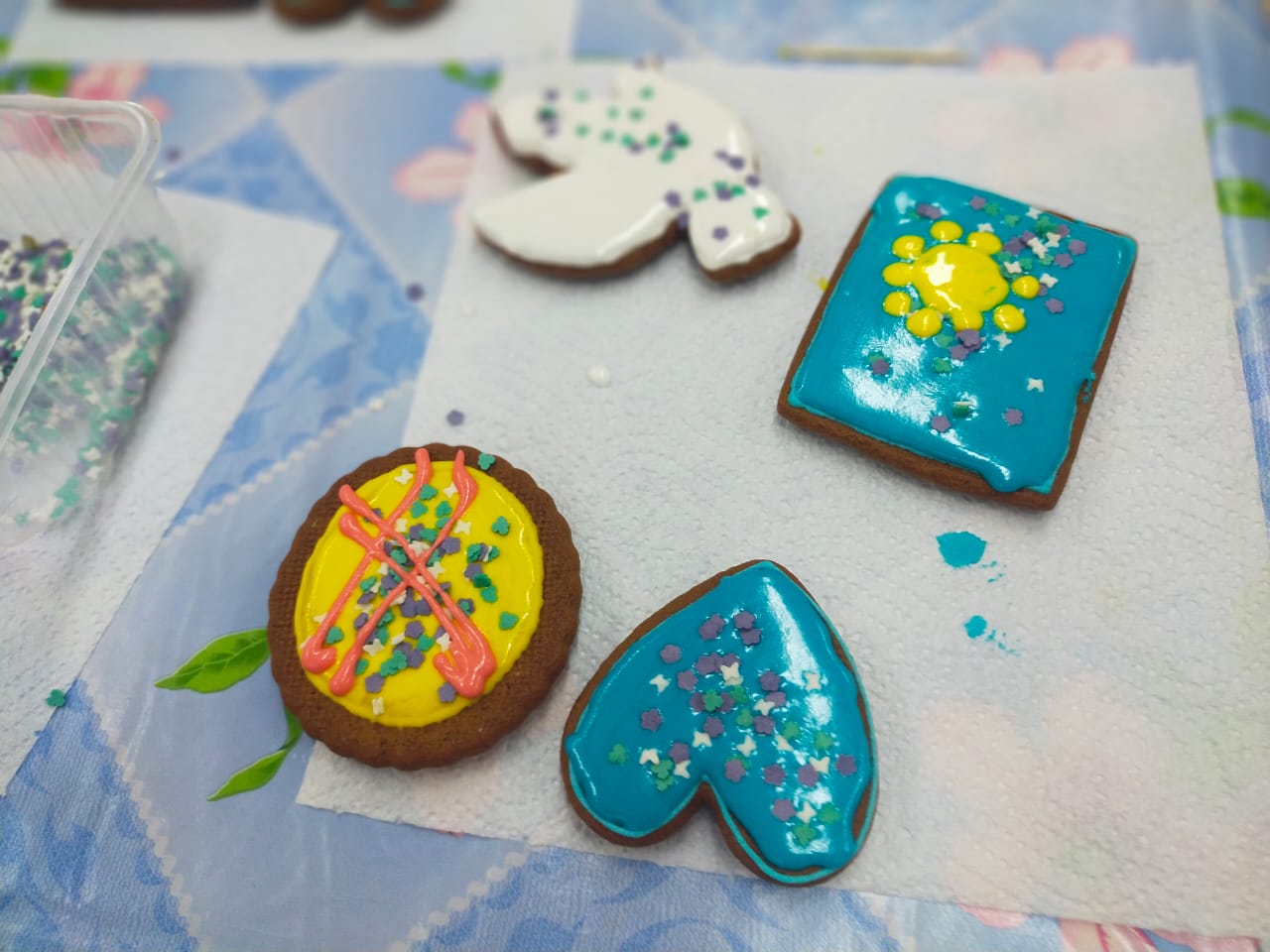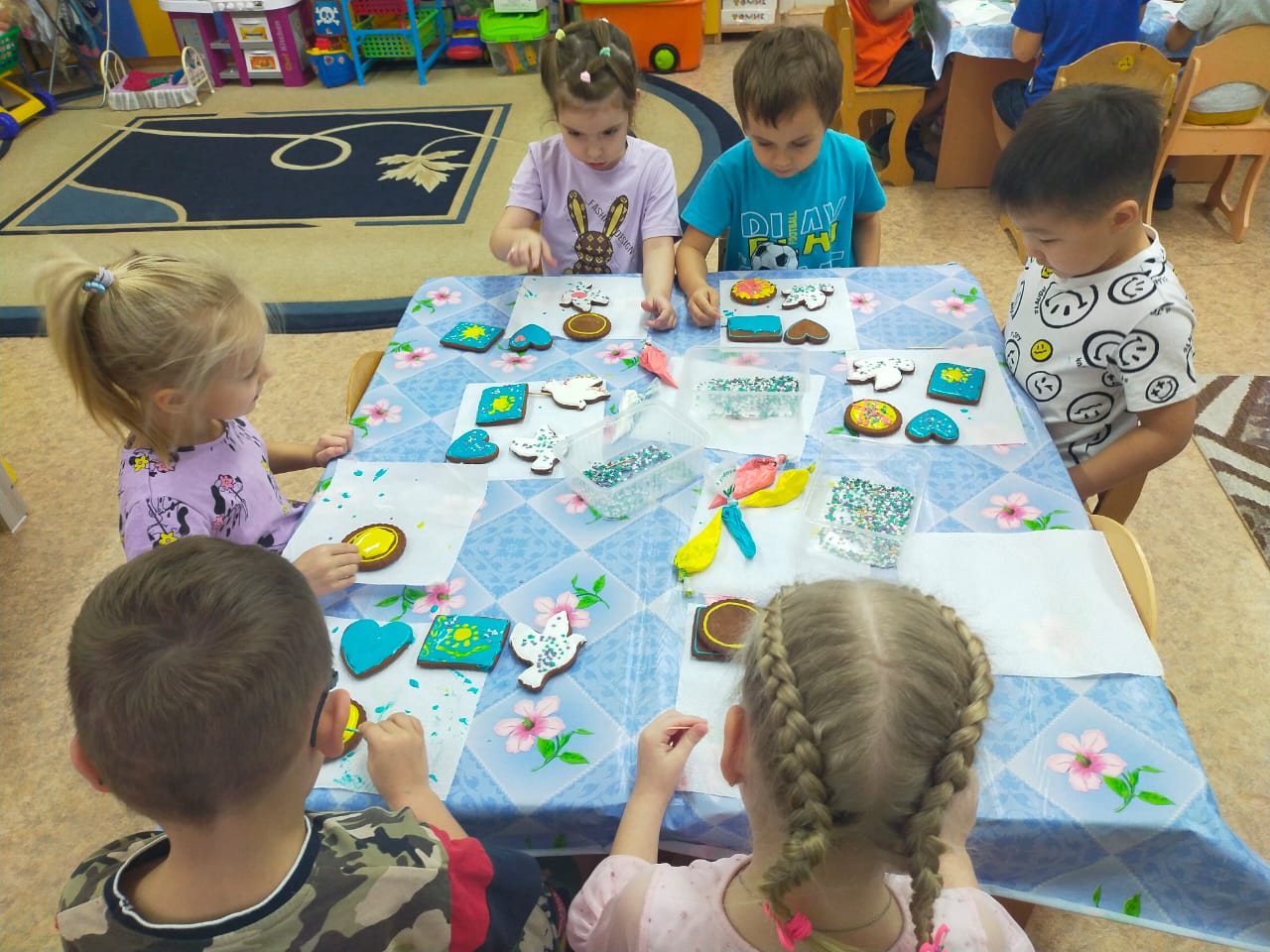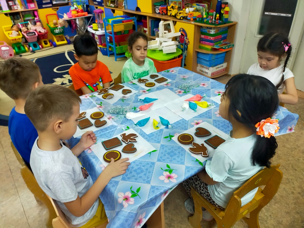 Вначале детям было рассказано о процессе изготовления самого пряника, и о составе сладкой глазури. После этого группа превратилась в мастерскую по росписи. Детям подробно рассказали о последовательности приемов росписи, как подчеркнуть силуэт, сделать прорисовку деталей и заполнить общую поверхность пряника. Ребята с большим энтузиазмом преступили к выполнению работы, каждый из них пытался как можно красивее и интереснее расписать свой пряник, в дополнение, используя украшения и кондитерские посыпки. После работы ребята рассматривали и любовались красивыми, расписными пряниками, которые у них получились. Все участники мастер-класса унесли домой вкусный и красивый подарок, сделанный своими руками чтобы угостить своих родных.