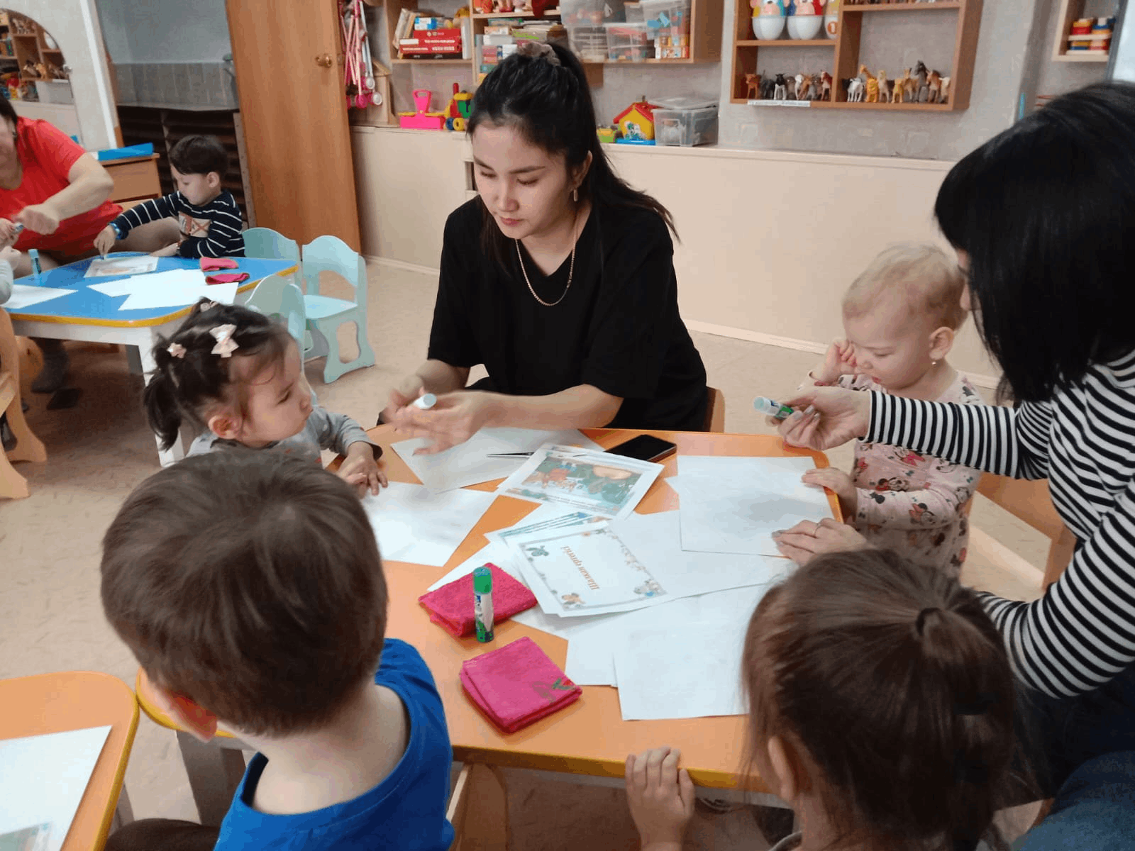 Задачи: Приобщать детей и родителей к устному народному творчеству через разные театры.Приобщать к совместным действиям со взрослыми, формировать духовно – нравственные ценности через театрализованную деятельность создовать условия для взаимодействий и совместные действий со сверстниками и взрослыми.