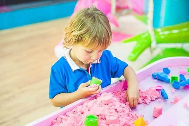 Если в вашем арсенале уже есть этот уникальный материал, то даже не нужно ничего изобретать. Кинетический песок сам по себе развивает тактильные ощущения, поэтому если вы уже организовали домашнюю песочницу, нужно просто посадить туда малыша и позволить ему играть. Следите, чтобы песок не раскидывался по квартире, не попадал в глаза, нос и рот ребенка.