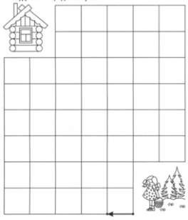 Нарисуй её путь по клеточкам, начиная от стрелочки: