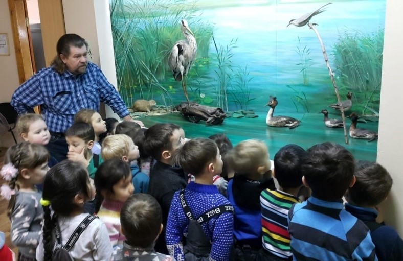 Экскурсовод очень интересно рассказывал ребятам о птицах, животных нашей области, чем вызвал неподдельный восторг у ребят.