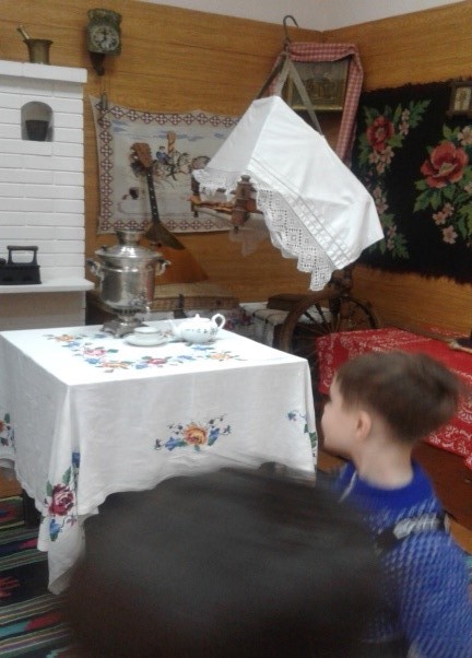 В зале истории и народного быта дети увидели старинную мебель, посуду, одежду казахского и русского народов.