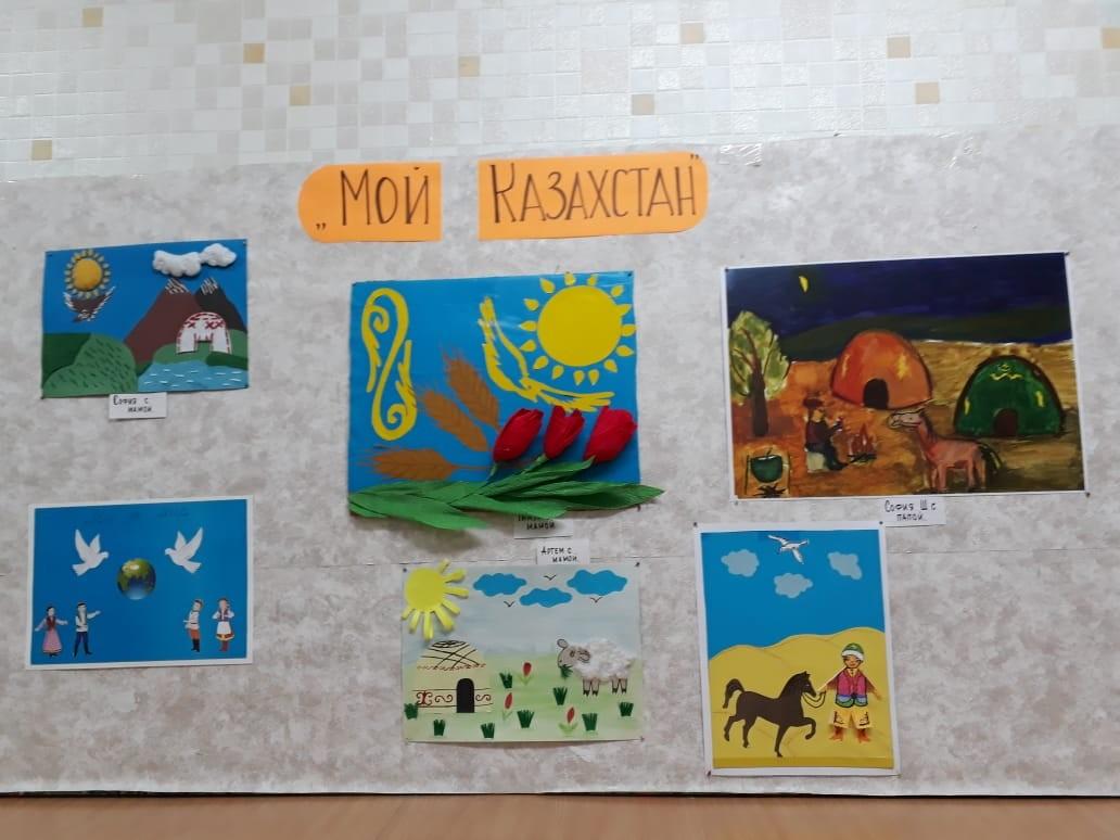 В холле ДО, была организована выставка детских работ «Я горжусь своей Родиной». В работах дети и родители смогли выразить и показать всю любовь к Родному краю. В конце тематической недели прошел флешмоб «Алға Казахстан!»