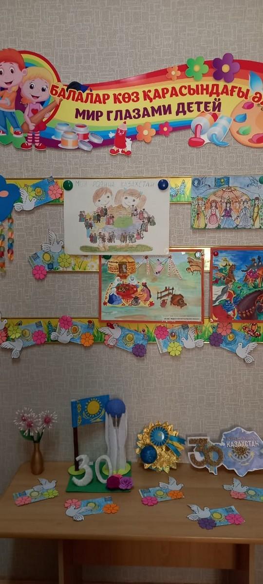 Во всех возрастных группах оформлены выставки совместного творчества детей и родителей «Казахстан – любимая страна». В фотографиях, рисунках, поделках дошкольники отобразили свою любовь к Казахстану, красоту, самобытность и гордость за свою Родину.