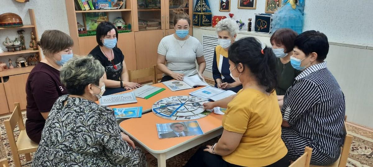 Учитель казахского языка Итемгенова С.Т. с педагогами ДО провела деловую игру «История родной страны», целью которой было воспитание у педагогов чувства патриотизма, любви и уважения к Родине, обычаям, традициям народов РК; формирование дружеских взаимоотношений между людьми разных национальностей; развитие у педагогов познавательного интереса к истории страны.
