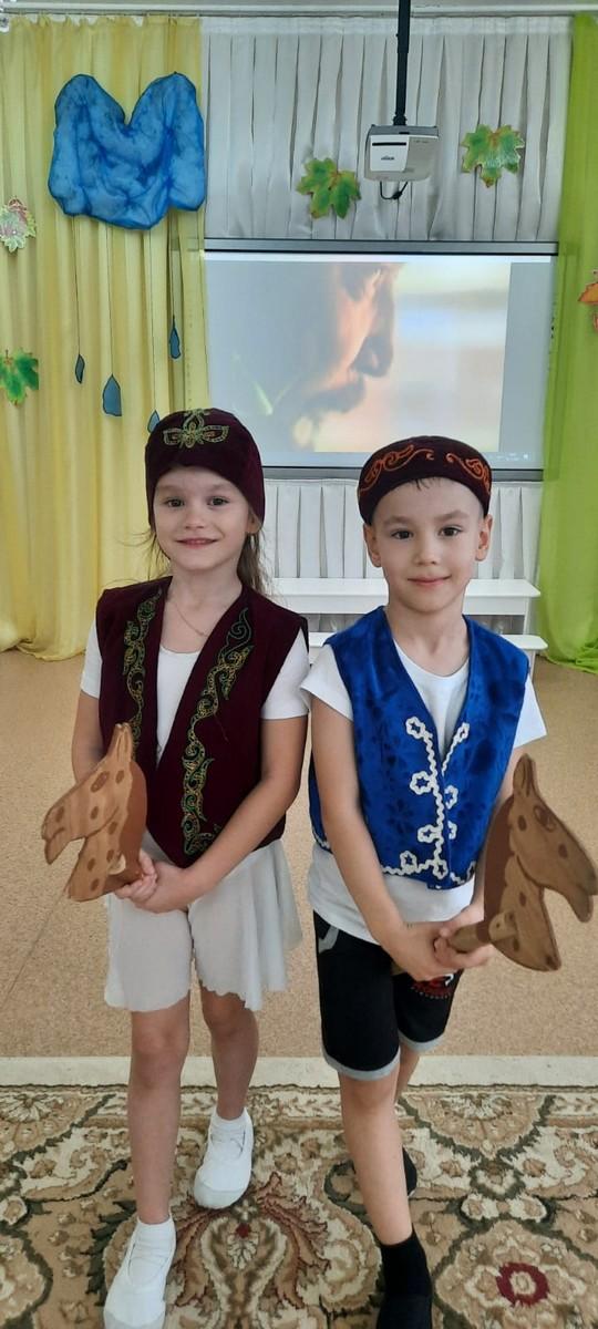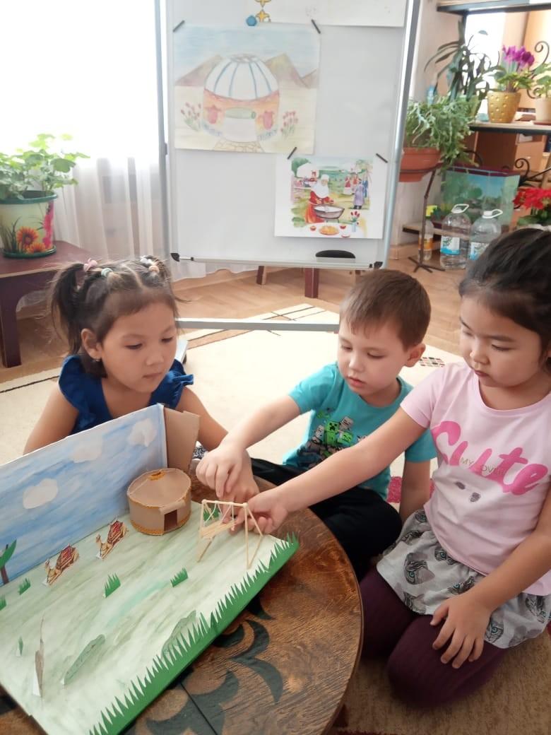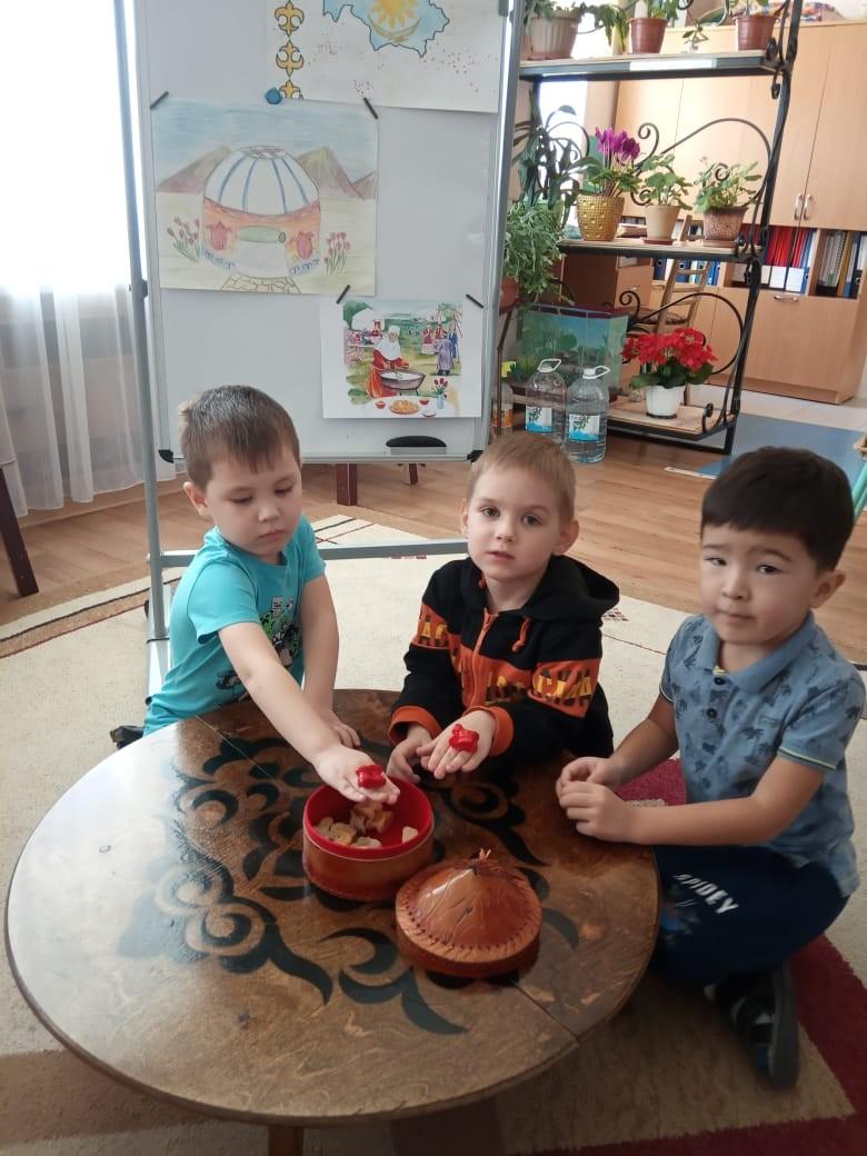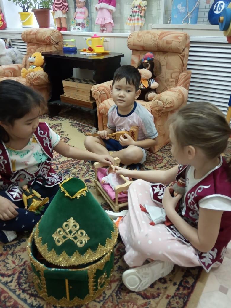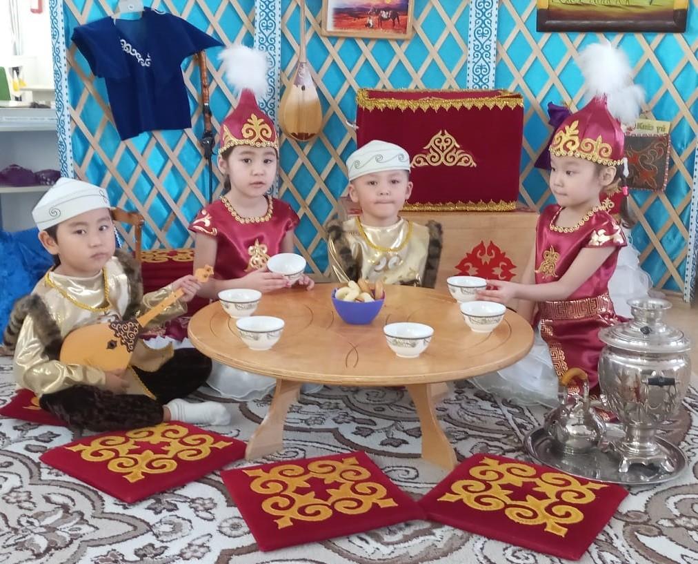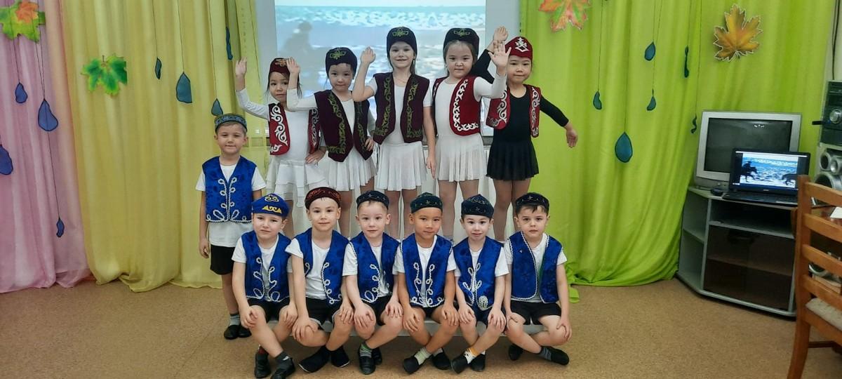 В старшей группе «Умники» — развлечение «Путешествие по Казахстану», где дети путешествуя, останавливались по тематическим остановкам со специфическими особенностями данного района (север - пшеница, юг – фрукты и т.д.) и закрепление национальных подвижных игр по схожей тематике.