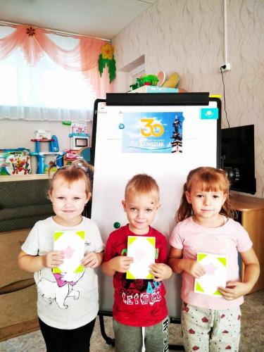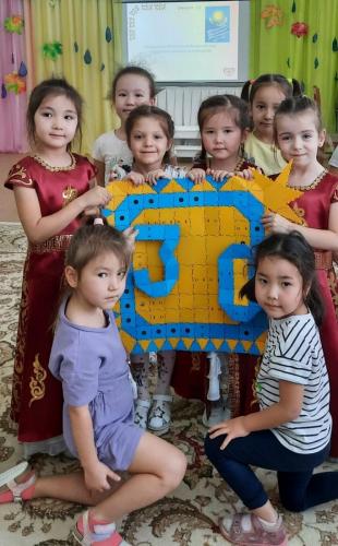 Тәуелсіздіктің 30 жылдығын мерекелеу аясында 8.11.2021 жылдан 12.11.2021 жылға дейін біздің мектепке дейінгі ұйымда «Тәуелсіз Қазақстанға – 30 жыл» тақырыптық апталығы өтті. Тақырыптық апталықтың мақсаты: мектеп жасына дейінгі балаларда азаматтық және патриотизм негіздерін қалыптастыру.