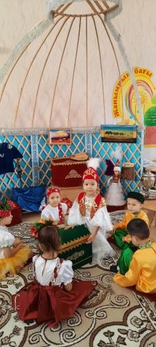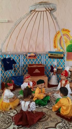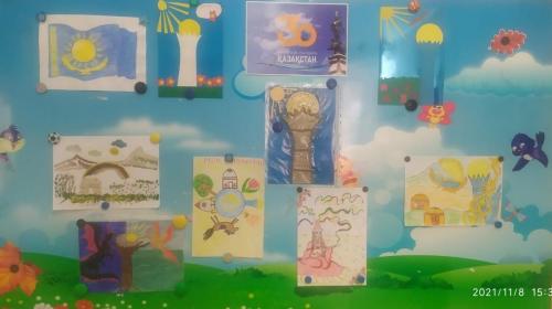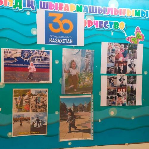 Барлық жас топтарында балалар мен ата – аналардың бірлескен шығармашылығының «Қазақстан-Сүйікті ел» атты көрмелері ұйымдастырылды. Фотосуреттерде, суреттерде, қолдан жасалған бұйымдарда Мектепке дейінгі балалар Қазақстанға деген сүйіспеншілігін, сұлулығын, өзіндік ерекшелігін және өз Отаны үшін мақтанышын көрсетті.