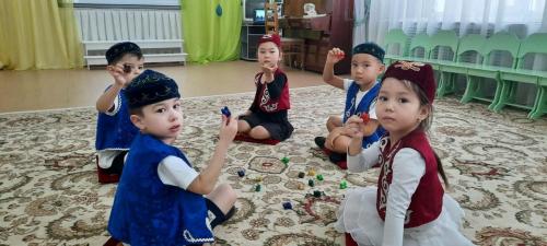 Дене шынықтыру нұсқаушысы Керлин И.В. «Қазақстан – біздің ата – бабаларымыздың жері» атты эстафеталық ойындарын дайындады, ұйымдастырды және өткізді. Ойындарға қатысу балаларға жағымсыз эмоциялар мен статикалықты бәсеңдетуге мүмкіндік берді, сондай-ақ балалар ағзасын сауықтыруға, халық ойындары арқылы фольклорды тану арқылы Қазақстан халықтарына толерантты қатынасты тәрбиелеуге ықпал етті.