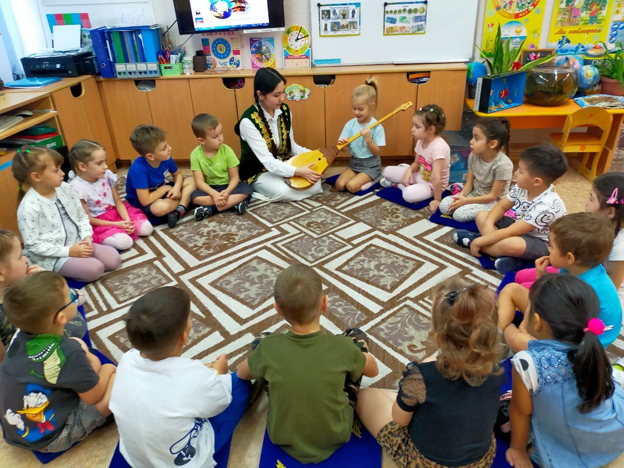 «Ромашка» мектепалды тобында ұстаздар балаларымен бірге «Өз өлкеңді сүй және жырла» музыкалық кешін өткізді, онда домбыраның шаттыққа толы дыбыстарын тыңдады, ол туралы аңыз-әңгімелер онда бүтін бір өнер бар екенін білді, әкеден балаға ұқыптылықпен беріліп, ән шырқады. Кейін балалар қызығушылықпен кірісіп, оған қазақ ою-өрнектерін жапсырды.
