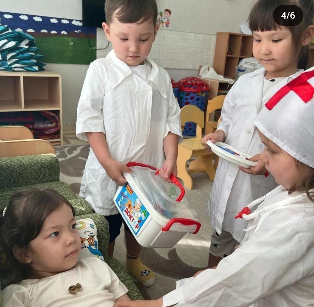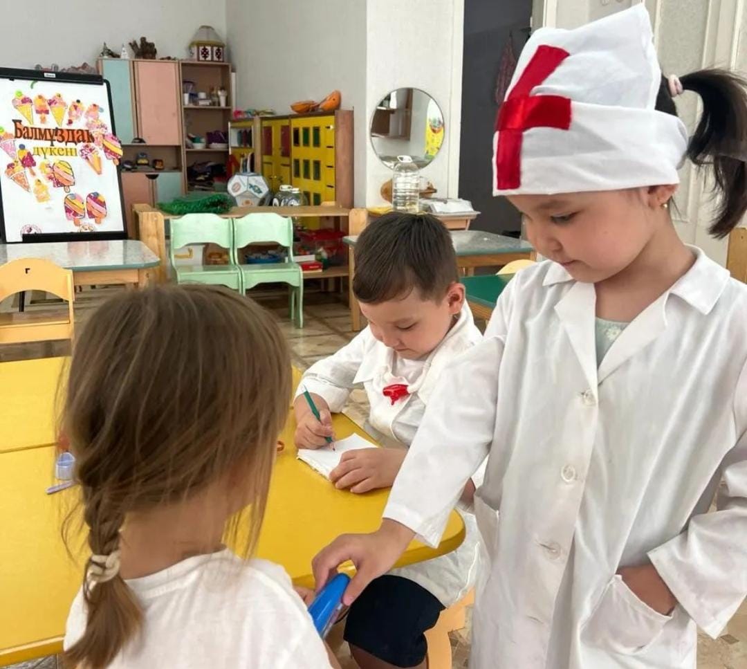 Елімізде маусымның әр үшінші жексенбісі - медицина қызметкелерлерінің күні.Осы атаулы күні адам жанының арашашысы,ақ халатты абзал жандарға арнайы құрмет көрсетіліп,еңбектері ерекше еленеді.Бізде қалыс қалмай,сүрініп қалсақ үстімізді сүртіп,жығылып қалсақ жақпамайын жағып жүрген,жүрегіне жылылық пен мейірімділікті сыйғызған ақ халатты абзал жандарды,балабақша дәрігерлерін мерекелерімен құттықтаймыз!Мүмкін ,армандар жетелеп,балаларымыз болашақта дәрігер болып қалар деген үміттеміз! "Айгөлек" ортаңғы тобы.